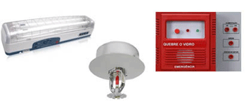 saídas, rota de fuga, alarmes e Iluminação de emergência.
