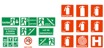 - Sinalização fotoluminescente para extintores e mangueiras de incêndio,